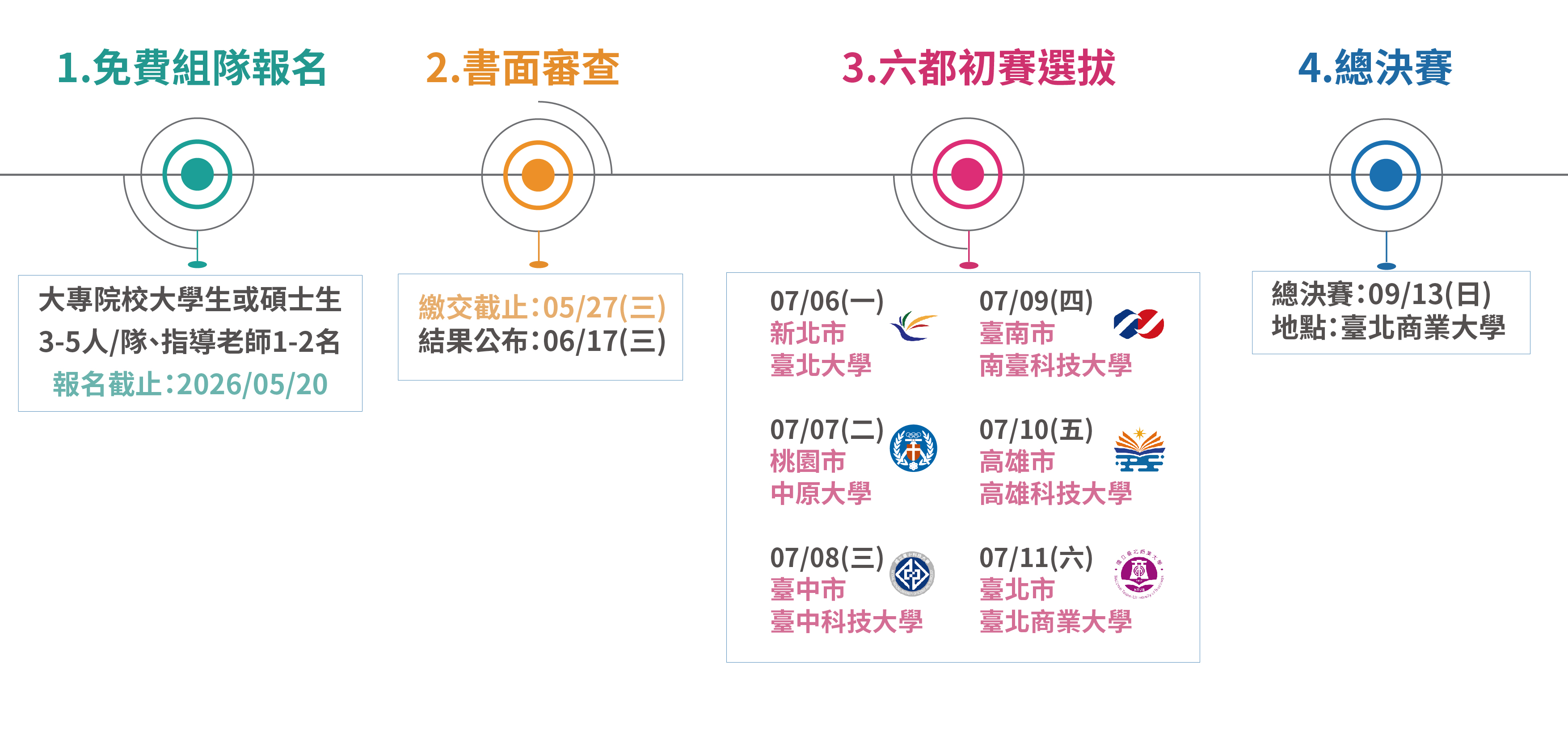 報名限制: 每位參賽學生限參加一組隊伍,不得跨隊重複報名。